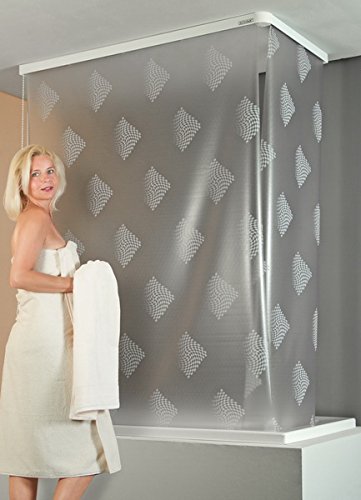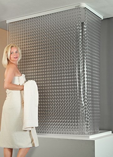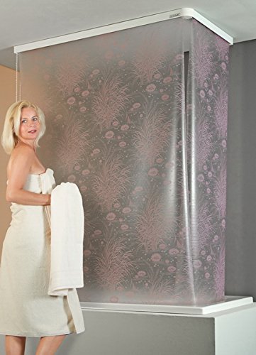 - leichte Montage, Kassette an die Decke schrauben; zum Duschen ausrollen, abtrocknen lassen, anschließend einrollen; haftet an der Wanne und nicht am Körper; keine störenden Stangen, keine Fliesen anbohren, kein Silikon